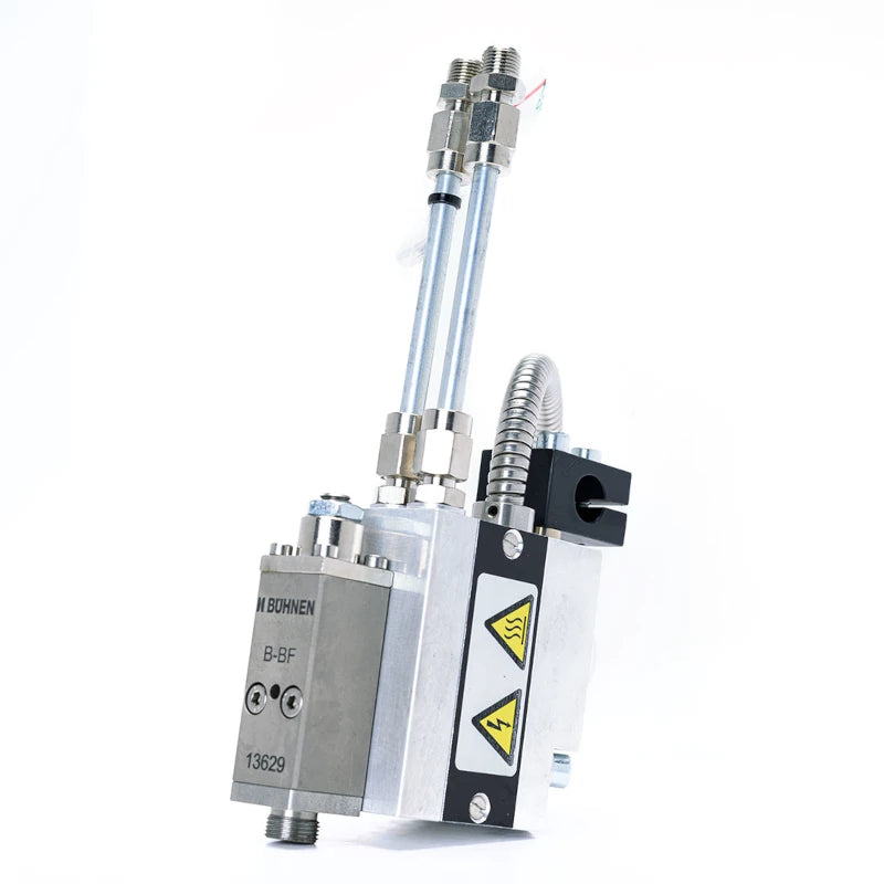 Unser refurbished Flächen-Auftragsköpfe haben statt einer Düse einen Klebstoffverteiler angeflanscht. Darüber wird...
