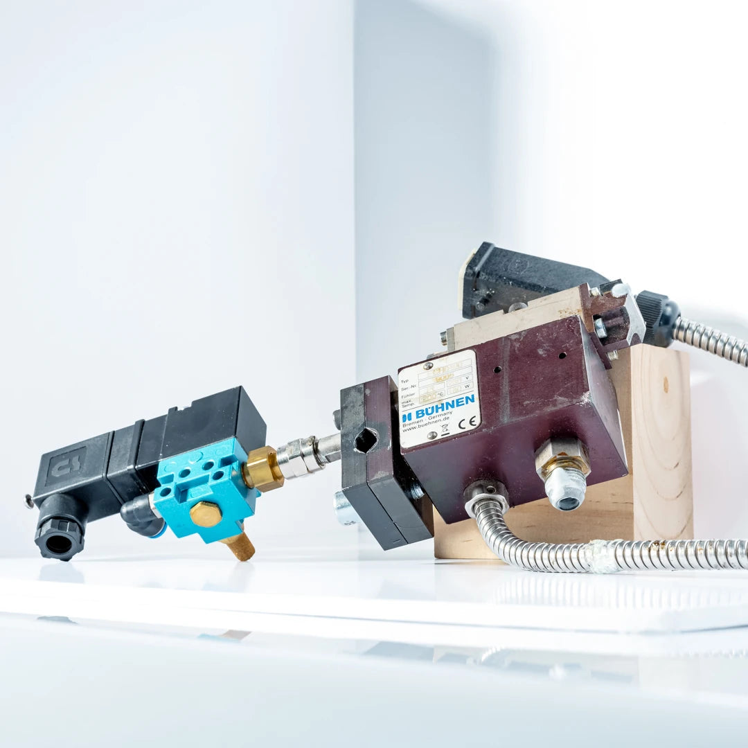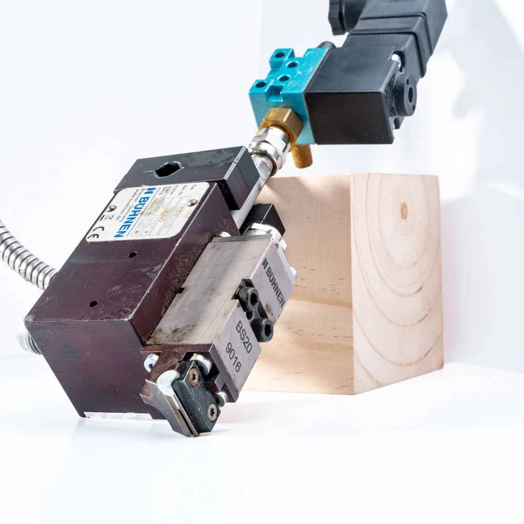 Mit dem gebrauchten Flächenauftragskopf HB 20 BS wird ein Klebstofffilm von bis zu 20 mm Breite aufgetragen.