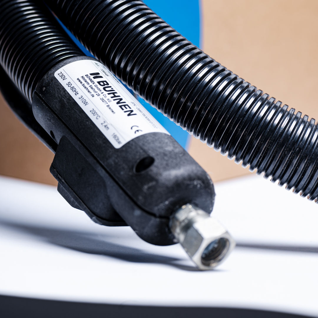 Heizbarer Schlauch für Raupen - Handpistolen in Kombination mit Schmelzgeräten.